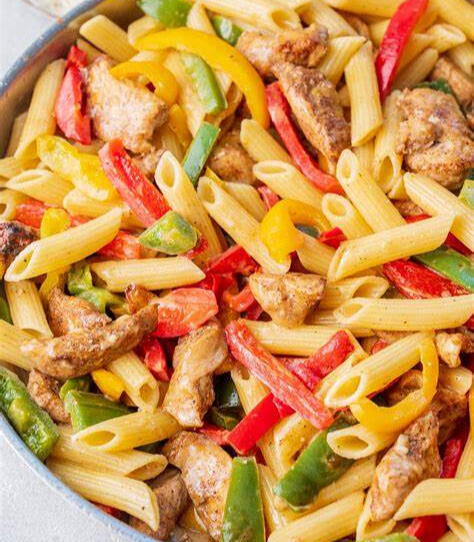 Perfectly cooked penne pasta tossed in our tomato herb cream sauce, chopped tomato and fresh mushrooms. Topped with fire-grilled chicken.JERK PASTA