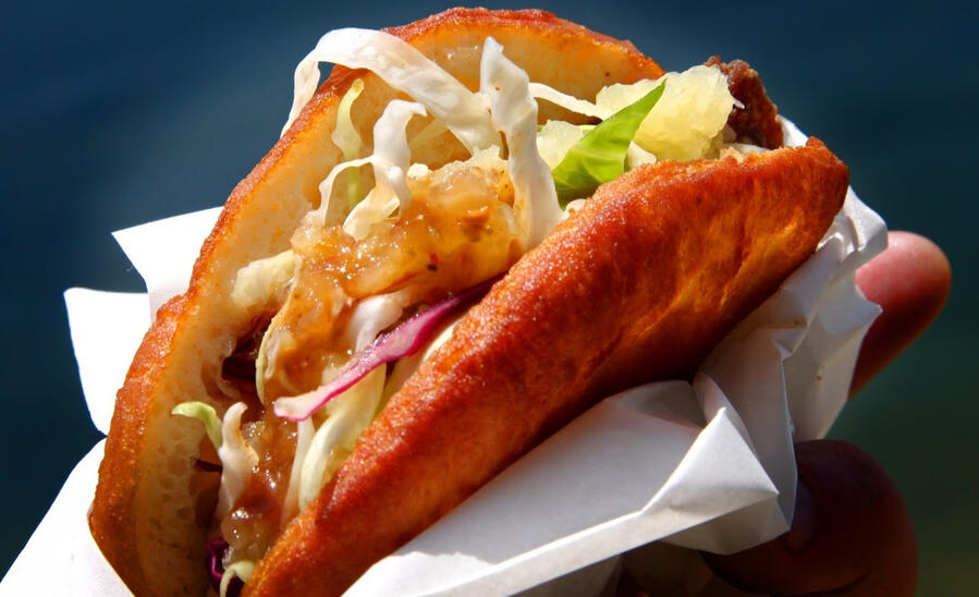 delicately seasoned chunks of imported blue shark, fried to perfection served with a mango chadon-beni dipping sauce and fluffy deep fried bread. (Bake)βBAJAβ SOFT TACOS (3PCS)